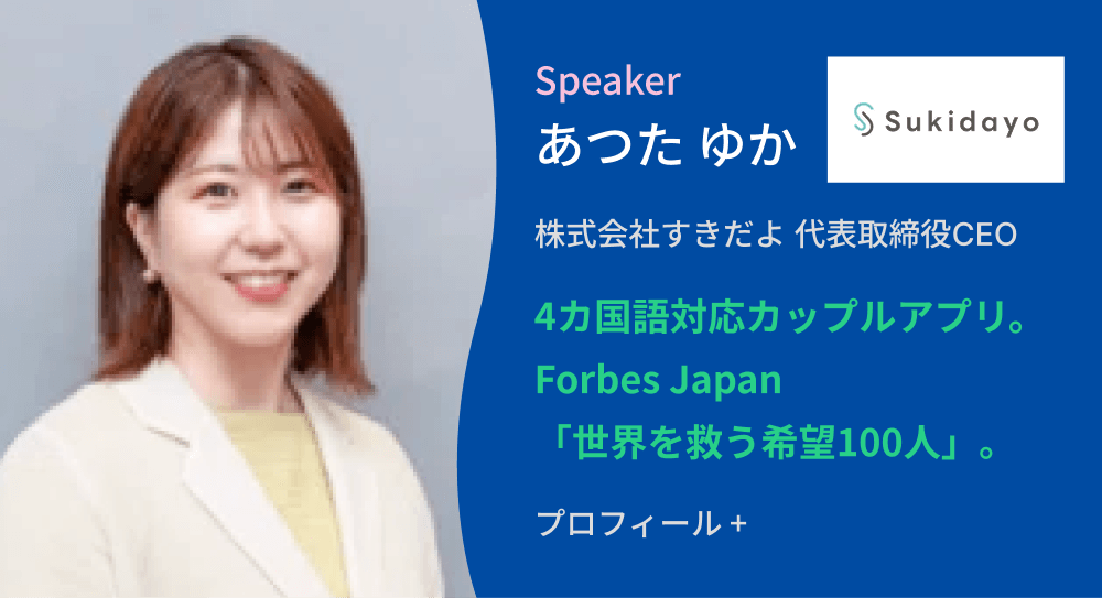 1993年生まれ、アメリカで幼少期を過ごす。IT企業でマーケティングを経験したのち、結婚や家族のパートナーシップへの課題から、株式会社すきだよを創業。「誰もが大切な人とずっと幸せでいられる社会」を目指し、カップルTechアプリ「Riamo」をグローバル展開する。2022年に著書「仕事も家庭もうまくいく!共働きのすごい対話術」を出版。2024年「Forbes JAPAN」にて、【今注目すべき「世界を救う希望」100人】選出。2025年日経クロストレンド「未来の市場をつくる100社」、東洋経済「すごいベンチャー100」に選出。