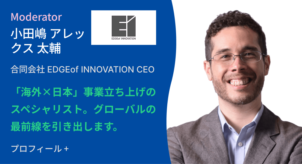 事業立ち上げの専門家として、数々のスタートアップや大企業の事業部立ち上げに従事。現在は、合同会社EDGEof INNOVATIONのCEOとして、日本のイノベーションエコシステムの国際化に邁進、20カ国以上のスタートアップ関連機関と様々な取り組みを進めている。J-Startup推薦委員。